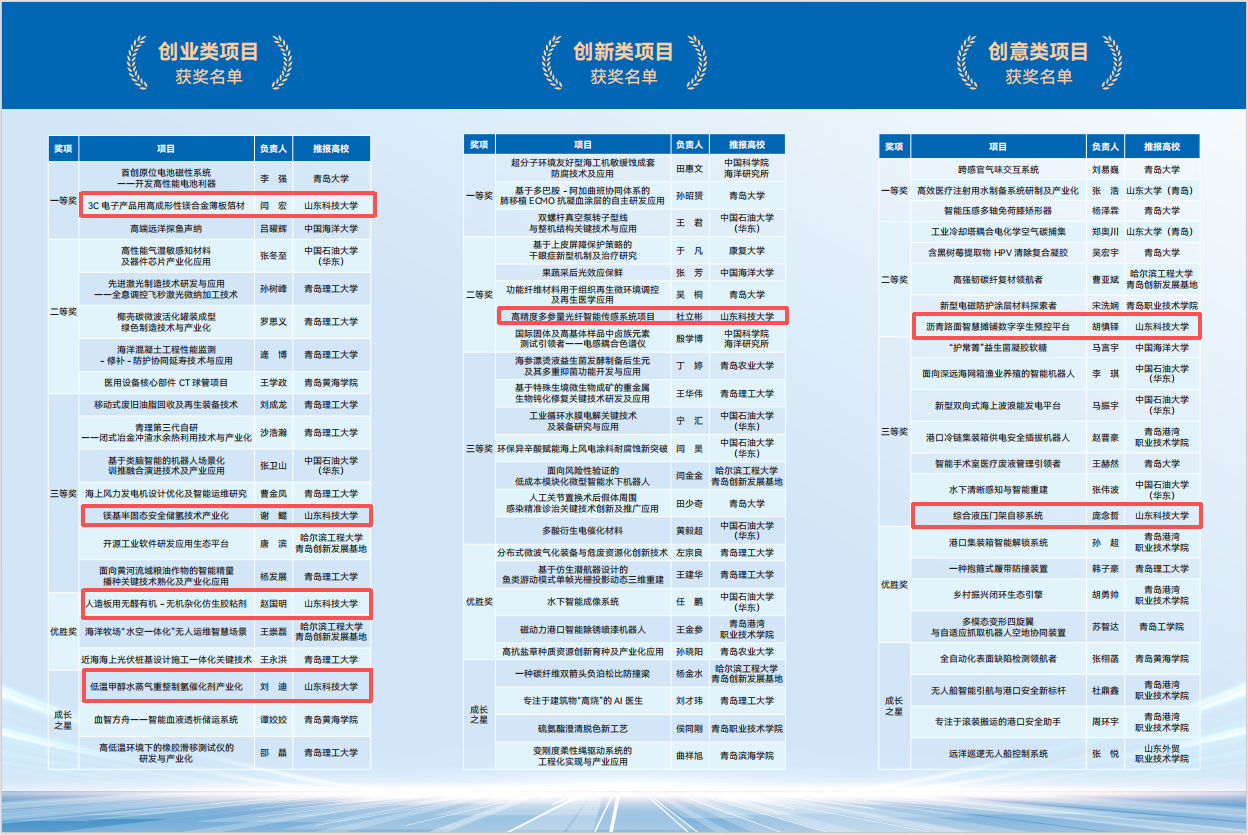近日,“琅琊荟”青岛西海岸新区2025首届高校科技成果转移转化精英挑战赛决赛成功举办,国家大学科技园推荐的19个项目中共有7个项目脱颖而出晋级决赛。最终,这些项目分别荣获创业类项目一等奖1项、三等奖1项、优胜奖1项、成长之星1项,创新类项目二等奖1项,创意类项目二等奖1项、三等奖1项。其中,“3C 电子产品用高成形性镁合金薄板箔材”项目荣获创业类项目一等奖、“高精度多参量光纤智能传感系统”项目荣获创新类项目二等奖;“沥青路面智慧摊铺数字孪生预控平台”项目荣获创意类项目二等奖。