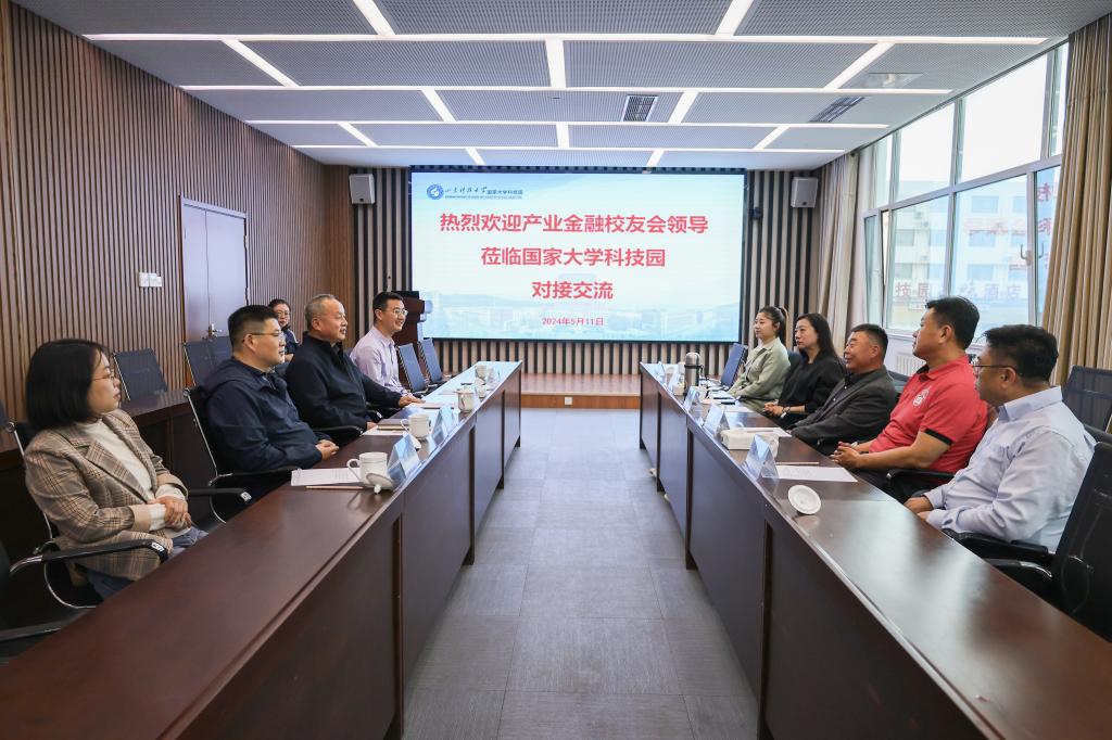 5月11日上午,山东科技大学产业金融校友会会长、朗威(青岛)控股集团有限公司董事长赵益群校友,青岛华盛私募基金管理有限公司董事长郭超校友,朔州安监局副局长马博超校友,青岛盛世乐天投资管理咨询有限公司总经理郭兵校友,博辰(青岛)供应链管理有限公司总经理管志霞校友,光大期货有限公司青岛营业部业务副总经理初知颖一行6人到国家大学科技园进行走访交流。校友办主任王晓东,安全与环境工程学院党委书记张恩生,科技产业管理处处长(国家大学科技园管理办公室主任)薛力,副处长(副主任)修湖参加交流座谈。