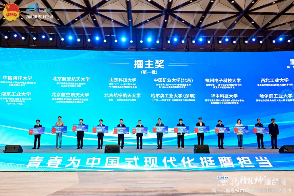 在“揭榜挂帅”擂台赛中,由测绘学院李治坤等人完成的《海洋“位”士--基于单北斗的海洋高频低成本精密定位系统》项目(指导教师:徐莹、阳凡林等)获全国擂主奖(小组第一名),能源学院于亦飞等人完成的《基于多维时空煤岩体实时监测数据三维分析仿真平台》项目(指导教师:卢国志、臧传伟等)、机电学院冯龙完成的《深部开采煤岩损伤演化全过程及其多维信息时空响应特征分析平台》(指导教师:张强)获特等奖。能源学院楚浩天等人完成的《见微知“储”—深层煤岩气“纳米-微米-宏观跨尺度套娃”的量子密钥》项目(指导教师:于海洋、张继成等)、测绘学院刘洋洋等人完成的《“北斗雪鹰”-极区海洋精密定位系统》项目(指导教师:王胜利、涂锐等)、计算机学院杨凯迪等人完成的《星瞰智防:密集时序遥感影像驱动的多灾种风险近实时感知预警与智能决策平台》项目(指导教师:于建志、崔宾阁等)获一等奖。